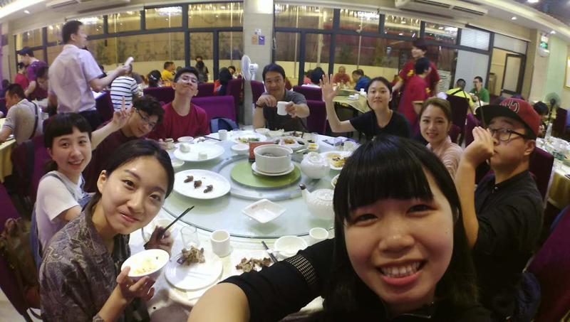 晚上大家找到了比较特色的粤菜餐馆,品尝了一顿美味的粤菜。饭后,大家玩着自拍,争着和老师拍照,仿佛一天的疲惫都已经消失。