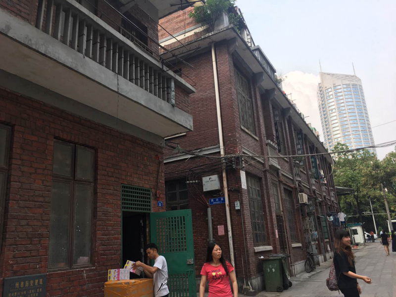 第二个目的地——北京路步行街。北京路步行街是外地人来广州必去的地方,那里有文化古迹,也有独特的集市景象。大家边走边拍,有的同学甚至还玩起了直播!走完了北京路,我们进入了老城区的小巷当中,带台湾师生观看了饱含历史韵味的古老建筑,具有浓厚生活气息的小杂货铺、剪发摊等。途中,领队的同学们还租来了共享单车,让台湾的师生感受了广州的生活方式。