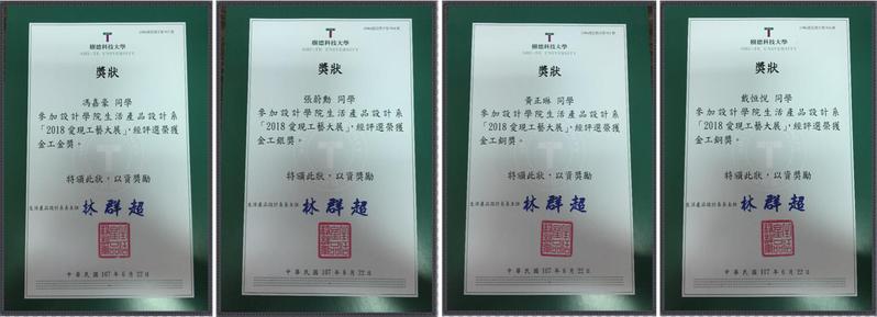 赴台学习期间深入了解台湾高校设计专业关于产学研的教学体系和方法,其中感触最深收获最大的是参观和学习树德科技大学生活产品设计专业每学期举办的《爱现》工艺设计大展,参展内容为每学期参与工艺课程学习的学生课程练习作业,如图四所示,从布展到作品展示的全部流程和计划非常清晰与流畅,全部学生自主自发的完成,学生全程参与其中,老师只做辅导与指导工作。图五为树德科技大学产品设计参展师生的开幕式合照,图六为我校师生共13人,36件作品参展,其中我校4名学生分别获得金银铜奖。从参展作品数量到作品质量大多数的产品都符合产学研的教学特点,工艺性与实用性美观性兼顾,将课程教学成果进行良好的落地。