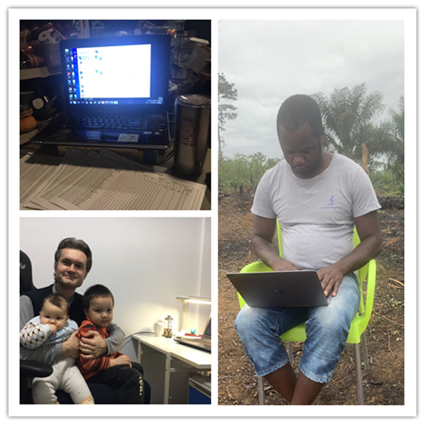 近日的喀麦隆首都雅温得下起了阵雨,当地时间早晨7点,趁着骤雨初歇、无人打扰的一段时间,电气工程学院外教Pascal来到网络效果最好的空旷林地开始了教学准备。经历了最初网络卡顿、掉线的尴尬之后,老帕终于找到了这块风水宝地来满足授课需求。伴着身后的虫鸣鸟叫,一句标准的中文问候“同学们下午好”开启了他的视频课程录制。