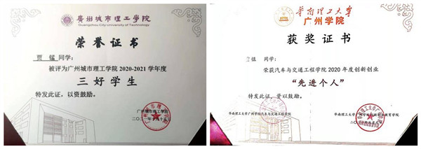 港澳台奖学金由教育部主办,旨在鼓励港澳台学生勤奋学习,积极进取,通过树立榜样带动更多的港澳台学生全面发展,积极融入祖国发展大局。此次评选,我校是省内同类高校中为数不多具有参评资格的高校之一。尽管贾锰谦逊地将此次获评称作是“意外之喜”,但他如今的成绩绝非偶然。大学四年期间,他多次荣获“先进个人”、“三好学生”等奖项,还作为我校大学生方程式赛车队(FSAE-华汽车队)主力成员参加2020年中国大学生方程式汽车大赛,与团队共同取得国家级创新二等奖、油车总成绩三等奖的优异成绩。他积极参与FSAE-华汽车队的研发, 参加省级和校级大学生创新创业项目,发表论文3篇。
