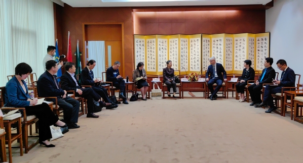 23日,代表团一行访问澳门圣若瑟大学。我校于2021年底与圣若瑟大学签订合作协议,之后双方积极探索交流合作,取得了一定的成绩。此次是我校首度回访。圣若瑟大学副校长张曙光、艺术与人文学院院长Carlos Caires、持续进修处处长林佩盈、中国内地招生办公室总监黄明贤、科学与环境研究所助理教授李旻达接待了我校代表团。张曙光简要介绍了学校的办学历史和概况,突出强调了学校在国际化办学、小班教学上的特色与优势,表达了希望进一步在学术交流、合作科研、师生深造、交流互访等方面加深合作的想法。魏德敏充分肯定了两校前期合作成果,也对未来两校合作方向表示认可。两校针对项目的推进进行了充分讨论,达成了共识,对下一步的推进工作分别做了部署和安排。