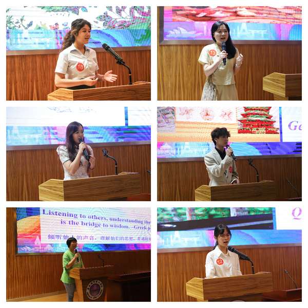 本次赛事以“增进国际理解 坚定文化自信”为主题,设置英语演讲、跨文化相关名言名句解析、评委问答三个环节。在英语演讲环节,选手们以“讲述中国故事”为主题,分别围绕改革开放中的当代中国、家乡文化特色、中药、榫卯、生肖、节气、地域美食等话题,阐述了自己对中外文化异同、中国文化走向世界等方面的见解;名言名句解析环节则考验选手的跨文化意识和思辨能力,选手需要在短时间内结合名言的内容分析如何看待文化多样性、促进文化交流融合、加强跨文化教育等知识点。在紧凑的比赛环节中,选手们全程使用英语分享自己的观点,展现了当代大学生对中国文化的热爱和自信以及对世界多样文化尊重、开放、包容的态度,选手表现出色,比赛现场掌声频频响起。