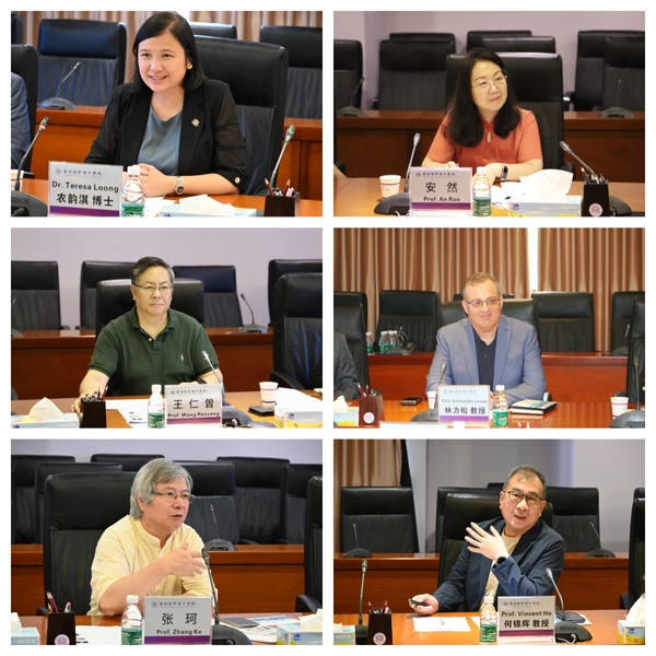 本网讯(记者 蔡晓坤)6月19日,澳门圣若瑟大学(简称USJ)副校长农韵淇一行五人来访我校,我校副校长刘洊波、港澳台事务办公室主任兼国际商学院院长安然、经济学院院长王仁曾、珠宝学院院长张珂,港澳台事务办公室相关负责人在行政楼201会议室会见来宾。