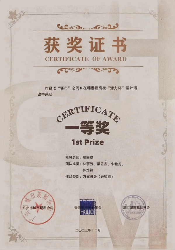 本网讯(记者 陈磊)3月25日,穗港澳高校“活力杯”设计活动总结会在广州市城市规划展览中心举行。我校建筑学院团队作品《“驿市”之间》在活动中获得一等奖。获奖团队学生代表参与颁奖仪式,学院教师代表受邀出席总结会。