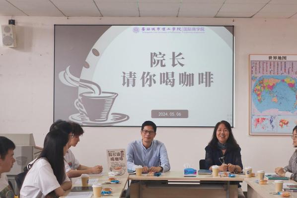 本网讯(记者 黄增光 吴馨妍)为深入了解学生学习跨文化沟通课程的收获与感悟,进一步增强学生自身跨文化能力,5月6日上午,国际商学院学风建设系列活动——“院长请你喝咖啡”在A6-505举行。学院院长安然,党总支副书记梁伟滔,教研室负责人,学工办负责人,学校国际交流中心及学生代表共20人参加。