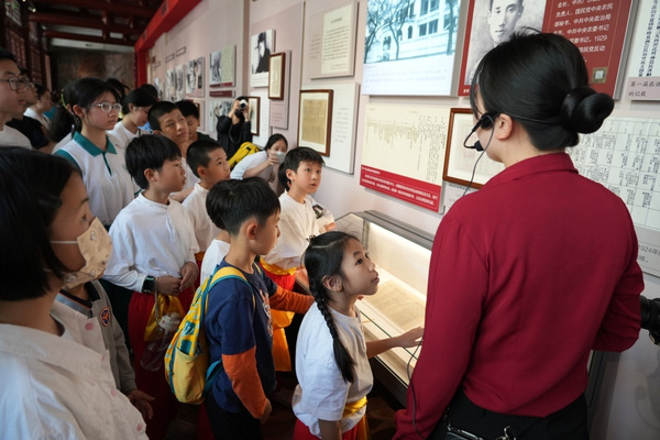 青少年在讲解员的带领下参观农讲所(广州日报 提供)