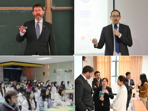会后,Joseph Sweeney与Philip Drake分别面向工科、文科的学生举办国际学术课堂。Joseph Sweeney以“科学赋能药物创新”为主题,以新冠疫苗研发为案例,揭示“基础知识-科学研究-应用转化-产业升级-全球协作”的闭环逻辑,激励学生培养全球视野,用所学知识推动技术创新。Philip Drake则立足“全球可持续发展与数字化转型”的前沿学科矩阵,详细介绍利物浦大学近年来新增的“绿色金融与可持续会计”、“人工智能与数字商业”等热门硕士专业,向学生展示利物浦大学依托谷歌、微软等全球名企的战略级产学研网络。