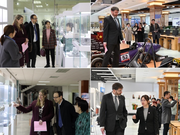 利物浦大学代表团还参观了我校绿智汽车与交通现代技术实验室及珠宝学院。在智能驾驶与轨道交通沙盘实践教学区,来宾对我校校企合作、学生赛车实践等多方面的成果表示肯定。在珠宝学院,来宾仔细欣赏掐丝珐琅与3D打印智能珠宝系列,高度赞扬我校在东方美学与数字智造方面的教育融合。