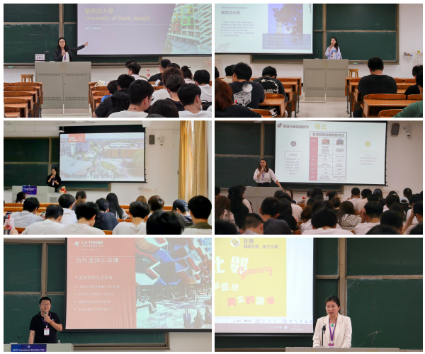 此外,澳门圣若瑟大学、澳大利亚乐卓博大学、英国西英格兰大学等院校与机构还举办了专场宣讲会,为同学们着重介绍出国(境)申研、本硕连读、德国实习就业、全球名校暑期交流等活动,为学生提供丰富的国际化办学盛宴。
