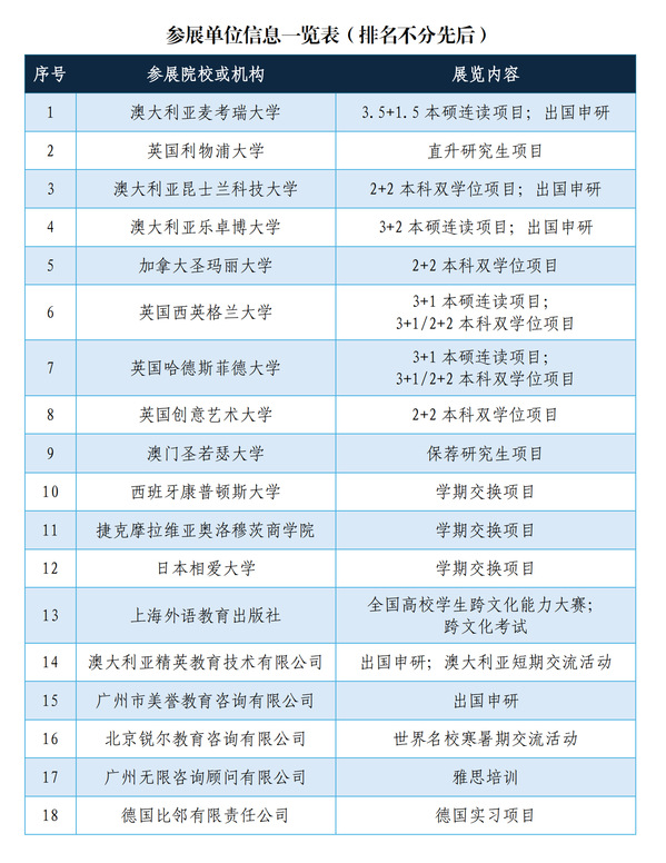 附:2025年国际教育展参展单位名单(排名不分先后)