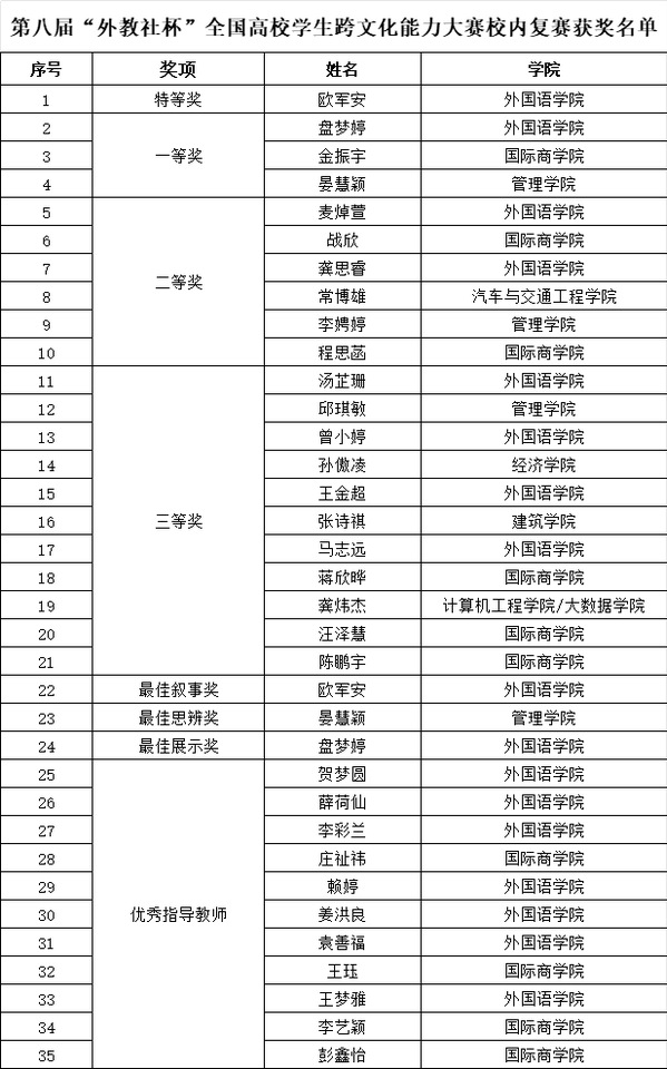 附:第八届“外教社杯”全国高校学生跨文化能力大赛校内复赛获奖名单