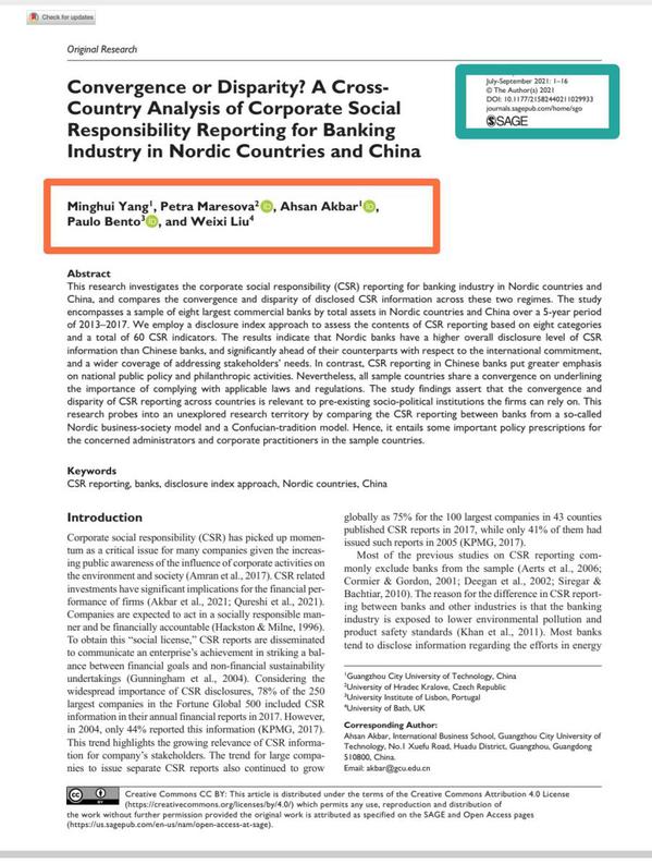 本网讯(记者 曾洁珊)7月10日,我校获悉,国际商学院优博团队在企业社会责任信息披露研究方面取得突破性成果,以杨明晖博士为第一作者、Ahsan Akbar博士为通讯作者、兼职教授刘维熙博士为第五作者的研究成果“Conve...
