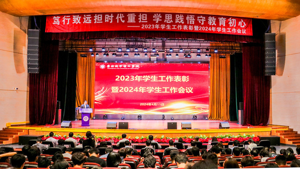 本网讯(记者 梁悦 柴伟强)为全面贯彻落实立德树人根本任务,统一思想,凝聚共识,夯实新学期学生工作基础,推动学校学生工作高质量发展,4月11日下午,我校2023年学生工作表彰暨2024年学生工作会议在学生活动中心召...