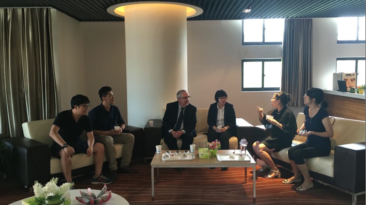 在下午的会议中,Dennis Gash主要与我校质量监控工作人员,即教务处、人事处相关负责人会面。会议中,教务处副处长刘佳、人事处副处长何江畅分别向Dennis Gash详述了我校各项教学评估机制以及学校教师职业发展情况。Dennis Gash高度评价我校综合评教体系以及教师继续教育对教师知识更新、提高教学能力的正面促进作用。