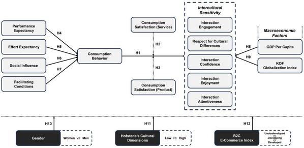 该论文首次将跨境在线购物视为一种“非正式多元文化体验”,探讨其在全球消费者层面上的社会心理影响。研究结合了国家层面的人均GDP、全球化指数等宏观指标,构建了以技术接受与使用统一理论(UTAUT)和跨文化敏感性量表(ISS)为基础的综合模型。通过一项来自69个国家、1512名消费者的全球调研,研究利用单群组与多群组结构方程模型开展实证分析,最终揭示了五大关键结论。该研究具有多方面的学术创新与应用价值。理论上,突破传统边界,将跨境电商消费界定为“有社会心理意义的数字跨文化互动”,融合UTAUT模型与ISS量表,为跨文化敏感性研究开辟新视角;方法上,打通宏微观数据壁垒,借多组结构方程模型实现性别、文化、技术的跨国比较,提供可复用的量化范式;实践上,为跨境电商平台发挥文化包容价值、数字贸易政策制定及企业国际化运营提供建议,填补跨文化心理学与电子商务研究断层。