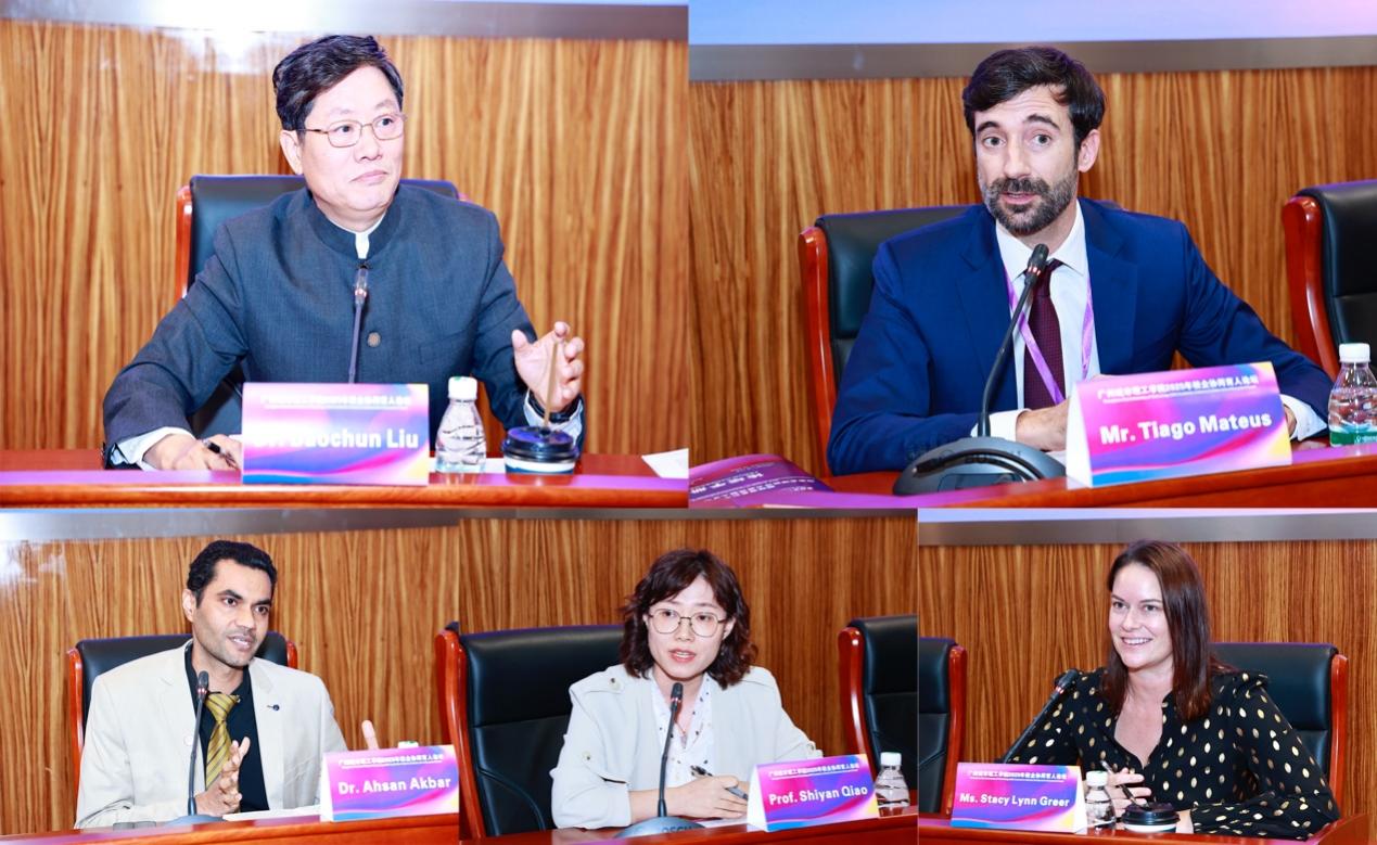 三位嘉宾高瞻远瞩的主旨发言,给此次国际论坛指明了方向。在圆桌论坛环节,五位来自政府、产业与学界的嘉宾从各自领域的实践经历出发,继续在如何落实全球胜任力应用型人才培养具体做法上展开热烈讨论。广州市人民政府外事办公室原主任刘保春博士指出:在不确定时代,唯“准备”是硬道理,他强调,在当今AI带来的世纪变革中,学生应持续学习,从“学习者”转变为“技能拥有者”;JOINCO公司中国区负责人Tiago Mateus先生通过AI对零售业企业转型案例,展示了人工智能重塑全球零售业态的效能,期望未来能够涌现出更多的人才借助AI为零售行业开创未来。国际商学院副教授Ahsan Akbar博士指出,应对全球商业格局的变革,我们应重新审视传统教学模式,要在课程中融入更多的跨文化适应与领导力的训练,以提升学生职场适应力。外国语学院副院长乔世燕副教授指出,人才培养应聚焦商务英语的专业性,推动“英语+商务”深度融合,培养出能够胜任跨文化商务交流的复合型人才。外国语学院教师Stacy Lynn Greer女士强调在AI快速发展的背景下,应重视自主学习、跨情境问题解决及跨文化团队协作等人类核心能力。