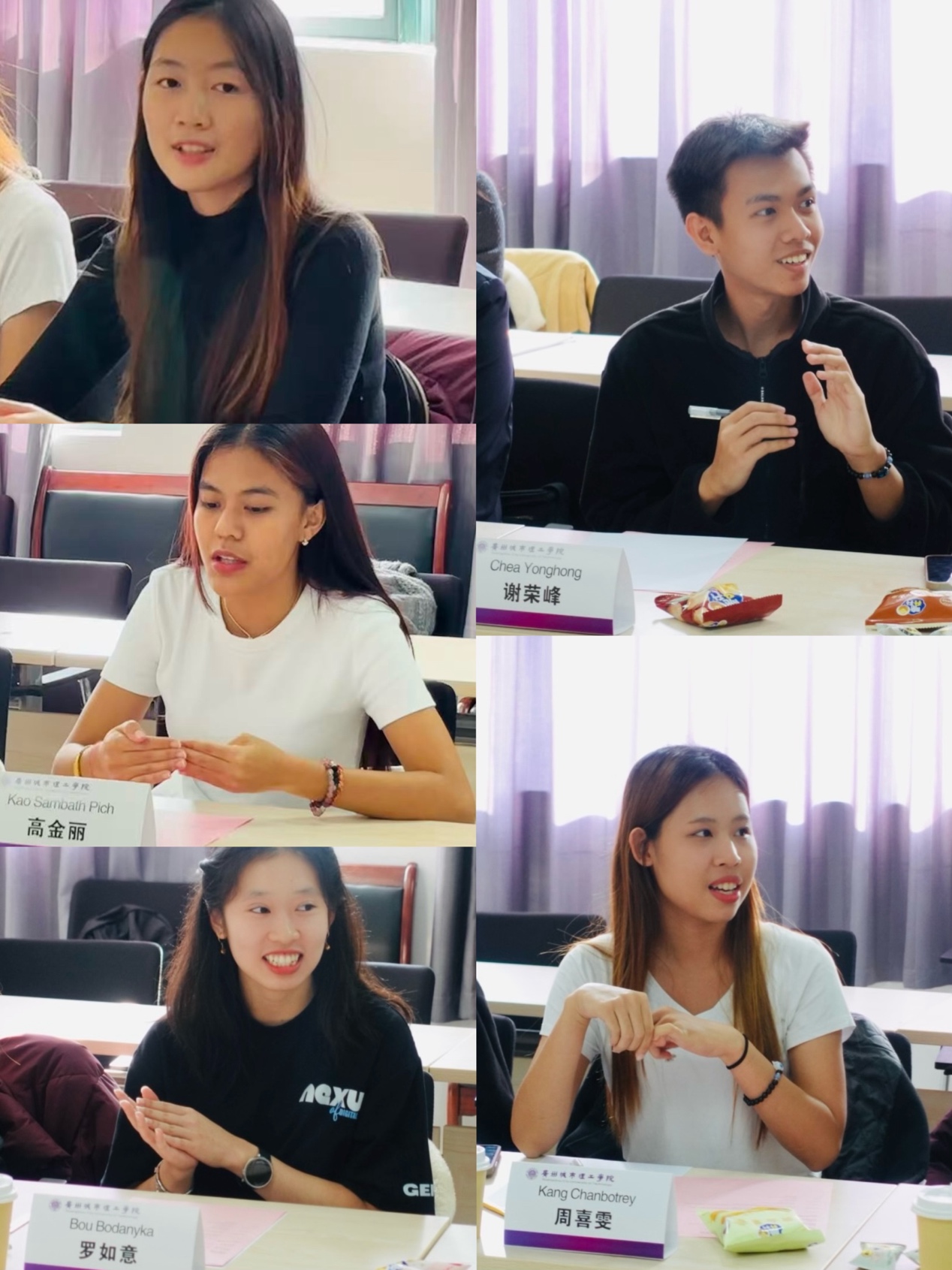 最后,安然对柬埔寨国际学生寄予殷切期望:第一,积极参加中国汉语水平考试,回国后要做“真实的中国故事讲述者”;第二,成为“文化桥梁工程师”,主动建立两国青年交流社群,保持与中国朋友联络与交往;第三,做广州城理的“海外招生大使”,推荐身边的亲友来校学习深造。