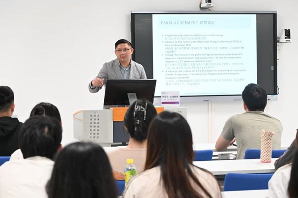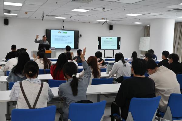 座谈会后,李旻达博士在行政楼517室为我校学生带来《以澳门为例:30.60 双碳目标,ESG管理,及联合国可持续发展目标的实践》主题学术讲座,并同步开展澳门圣若瑟大学保荐研究生项目宣讲。讲座中,李旻达博士结合澳门本地实践案例解读相关专业领域热点议题,介绍了圣若瑟大学的办学特色、科研平台,重点讲解了研究生招生新政、报名关键信息及奖学金申请机会,现场为学生解答专业学习、升学申请等方面的疑问,为校际学生交流搭建了直接的沟通平台。